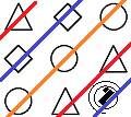 Pravilo 2. Na dijagonalama po bojama nalaze se isti likovi: Zaključak: Treći red. Nedostaje dijamant označen je plavom linijom. Tačan odgovor: |