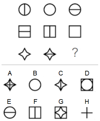 Pravilo 2. Svaki red ima vertikalnu, horizontalnu liniju ili bez linije. Zaključak. Dijamant sa udubljenim stranicama i vertikalnom linijom. Tačan odgovor: |